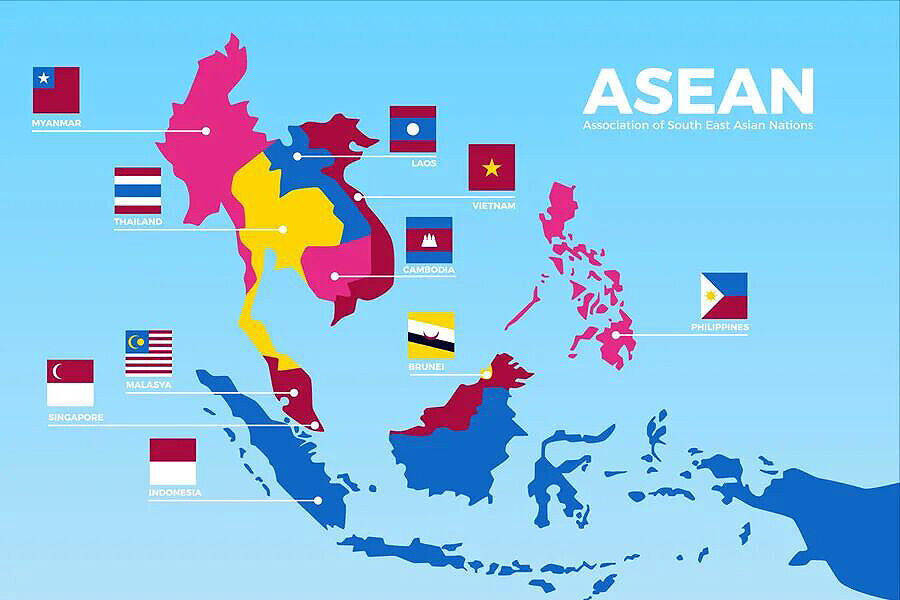 این گروه که در سال ۱۹۶۷ تأسیس شد، شامل برونئی، کامبوج، اندونزی، لائوس، مالزی، میانمار، فیلیپین، سنگاپور، تایلند، ویتنام و تیمور شرقی است.